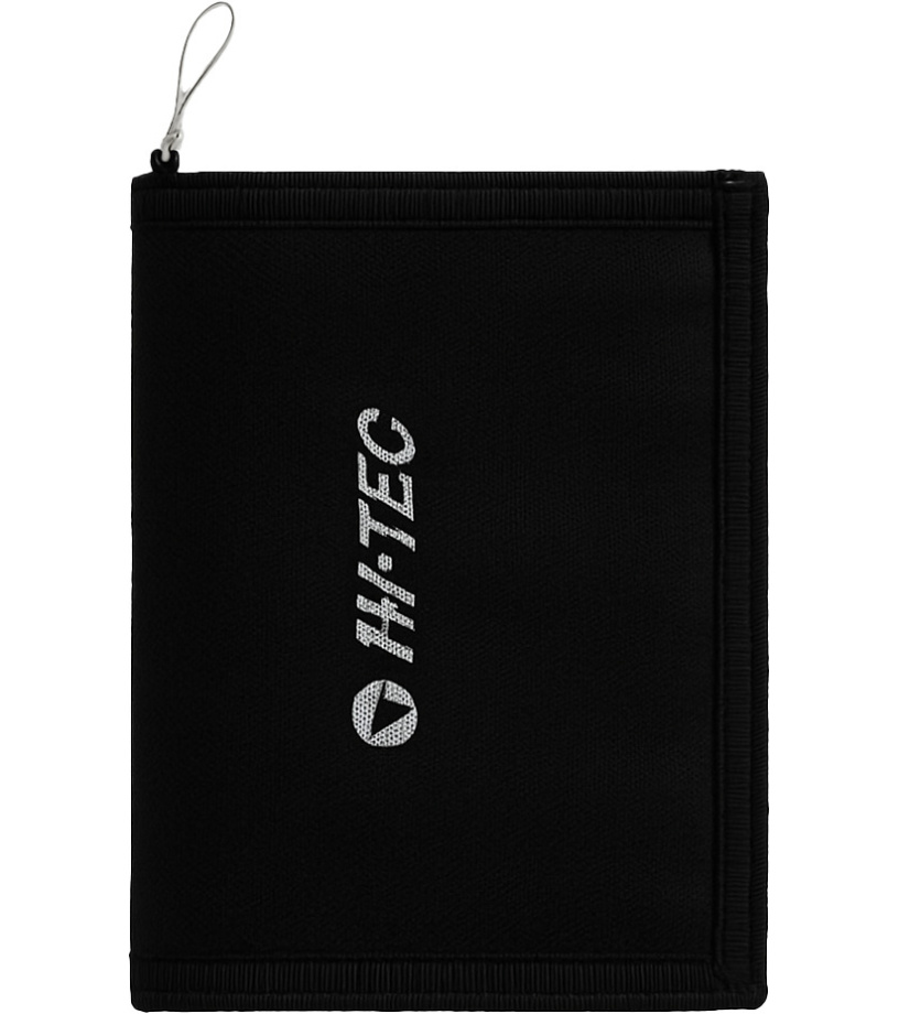 Praktická peněženka Hi-Tec v elegantní černé barvě. Vyrobena z odolného materiálu, vhodná pro každodenní používání i sportovní aktivity. Nabízí přehledné uspořádání přihrádek na bankovky, karty i mince a zapínání na suchý zip pro bezpečné uzavření.