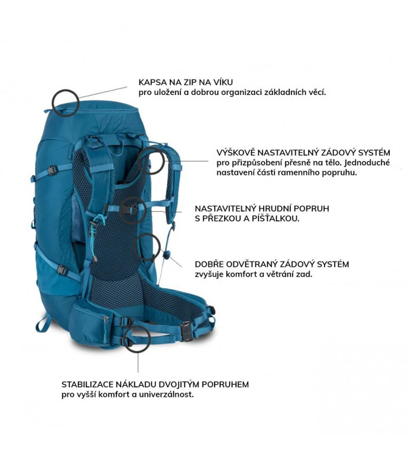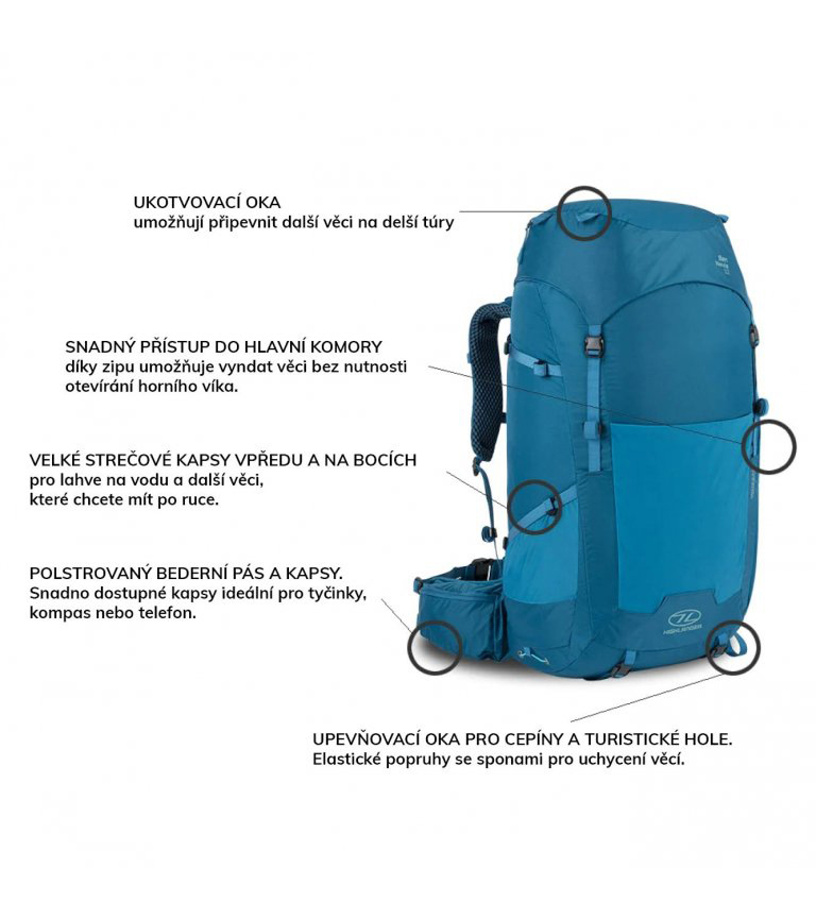- Další popruhy a úchytyúchyty na připevnění dalšího vybavení