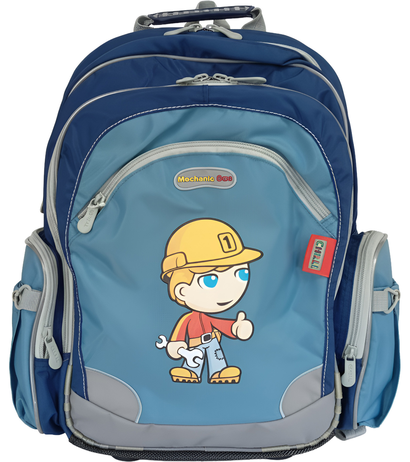 Školní batoh Topgal CHI 149 D s motivem malého opraváře je ideální pro chlapce v 1.–3. třídě ZŠ. Má ergonomicky tvarovaná záda s lehkým hliníkovým rámem, nastavitelné ramenní a hrudní popruhy a reflexní prvky pro bezpečnost. Nabízí dvě prostorné komory, přední kapsu na zip a dvě boční kapsy na láhev. Díky pevnému dnu s nožičkami drží tvar a odolá každodennímu používání. Batoh je vyroben z voděodolného materiálu a snadno se udržuje.