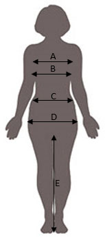 | A | Obvod přes prsa | 86 - 91 | 92 - 97 | 98 - 103 | 104 - 109 | 110 - 113 | ||||