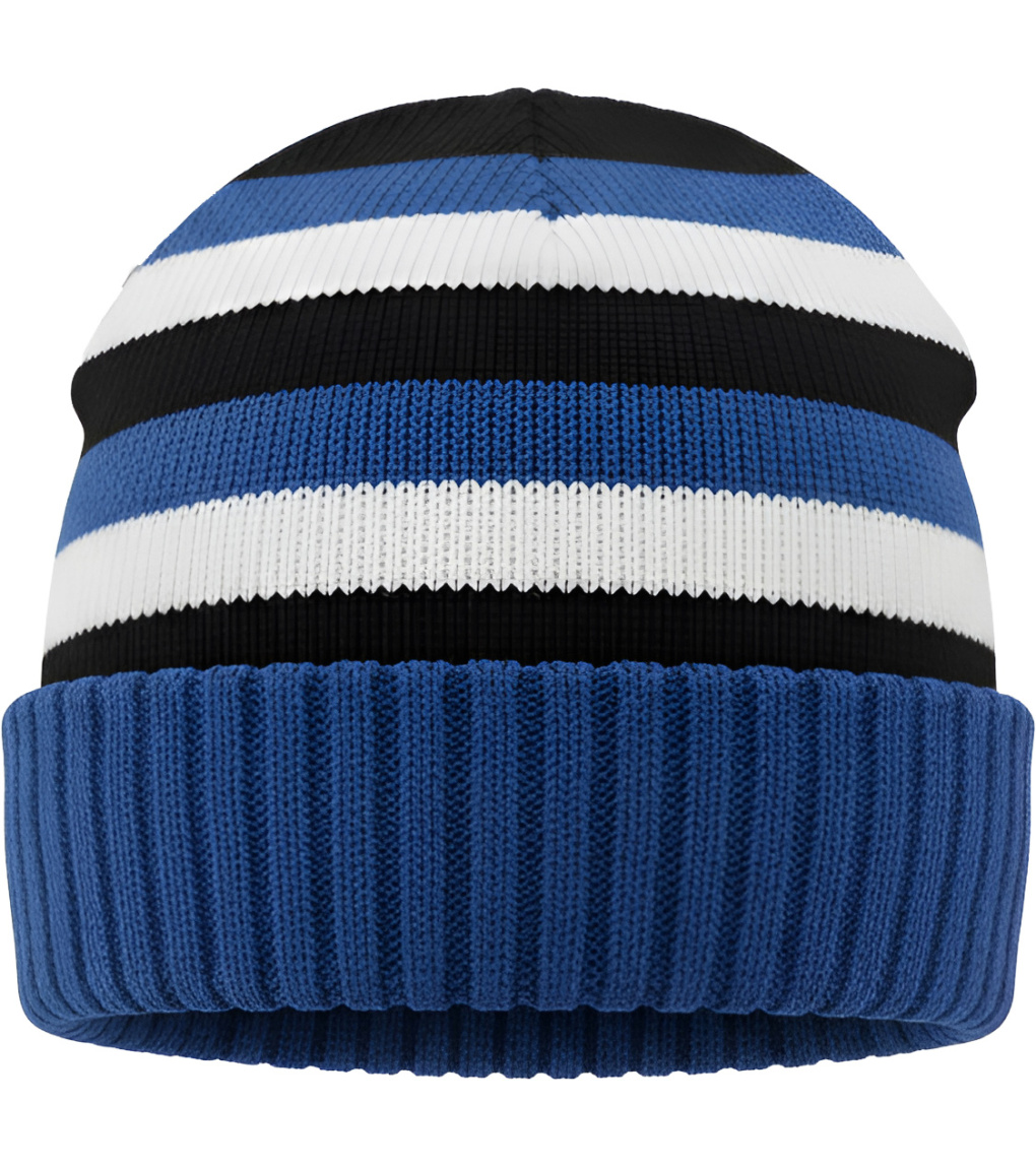 Pletená zimní čepice v pruhovaném designu kombinuje různé barvy. Je vyrobena z měkkého a hřejivého materiálu, který poskytuje příjemné teplo i v chladných dnech. Díky širokému ohrnutému lemu dobře drží tvar a pohodlně sedí na hlavě. Stylový a praktický doplněk pro zimní období.