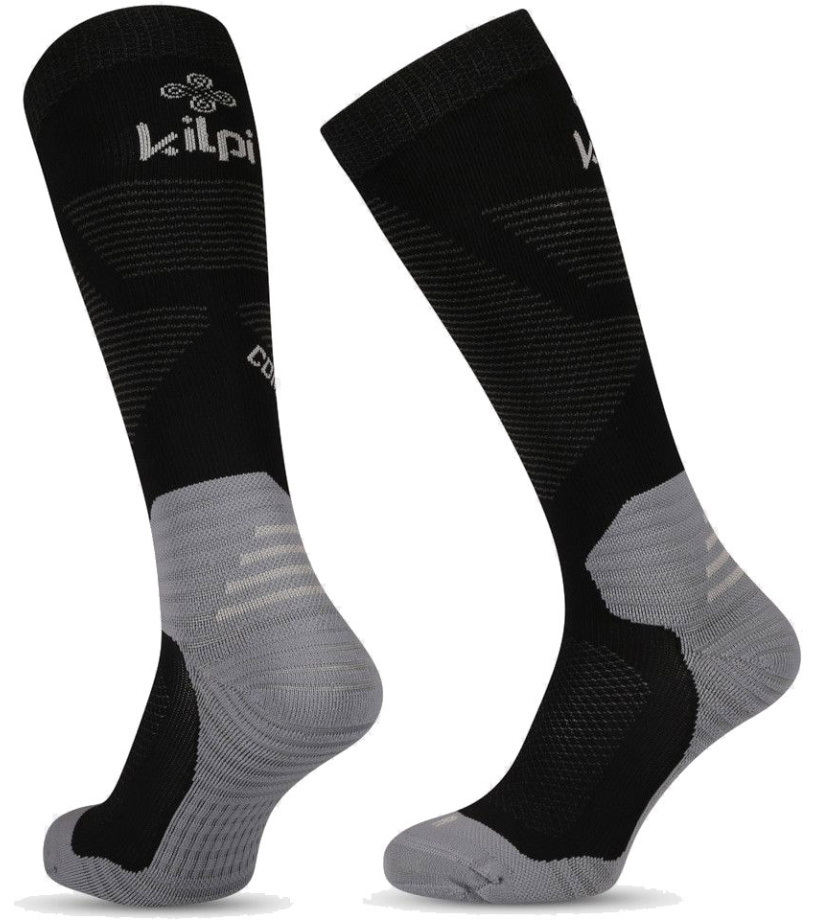 Kompresní podkolenky Kilpi COMPRESS-U díky své kompresní funkci zlepšují regeneraci svalů, mikrocirkulaci a prokrvení pokožky. Podkolenky pomáhají odvádět a absorbovat vlhko a chrání běžce nebo cyklisty před odřeninami. Funkční zónovaní kopíruje tvar lýtkového svalu, nártu a kotníku a horní lem je dostatečně pružný. Elastický lem kolem nártu zabraňuje shrnování ponožky. Prodyšná tenká ventilační pletenina na nártu je lépe prodyšná a dobře dýchá. Kloubní kůstky, pata a špička jsou z příjemného plyšovaného úpletu, který chrání proti otlakům. Díky vláknům polyamidu a elastanu, je návlek dostatečně pružný a silný v tahu; ionty stříbra působí mírně antibakteriálně.