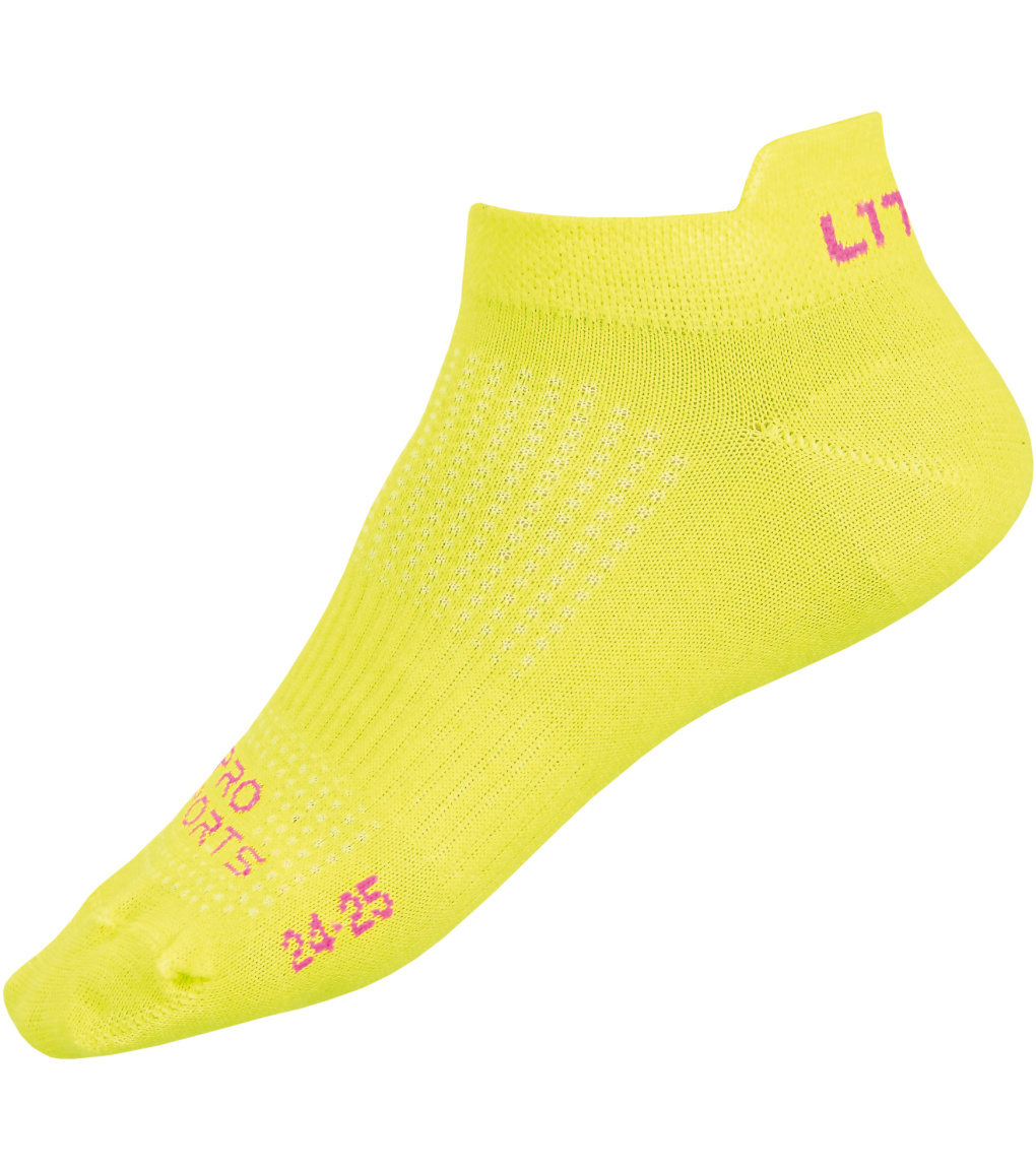 Ponožky nízké. Antibakteriální se stříbrem AG+. V zadní části zvýšený lem, pro ochranu achilovky. Air ventilační panel v oblasti nártu. Elastická bandáž v chodidle. Extra plochý šev špice. Komfortní protiskluzový lem. Vhodné pro veškeré druhy sportu především v jarním a letním období. 70% Polyester + 23% Polypropylen Siltex + 7% Elastan 103 reflexní žlutá 311 reflexní růžová 503 reflexní tyrkysová 24-25, 26-27, 28-29