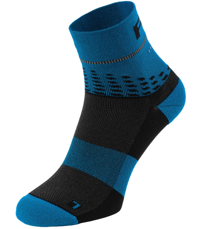 Sportovní ponožka s reflexními prvky zvyšující viditelnost a bezpečnost. Materiál Q-SKIN® je vlákno z polyamidu 6.6, do kterého jsou ionty stříbra vkládány přímo během procesu zvlákňování, což omezuje růst bakterií a brání tělesnému pachu. Q-SKIN® se stará o pokožku a poskytuje její nositelce prodyšnost, svěžest, hygienu a pohodlí.