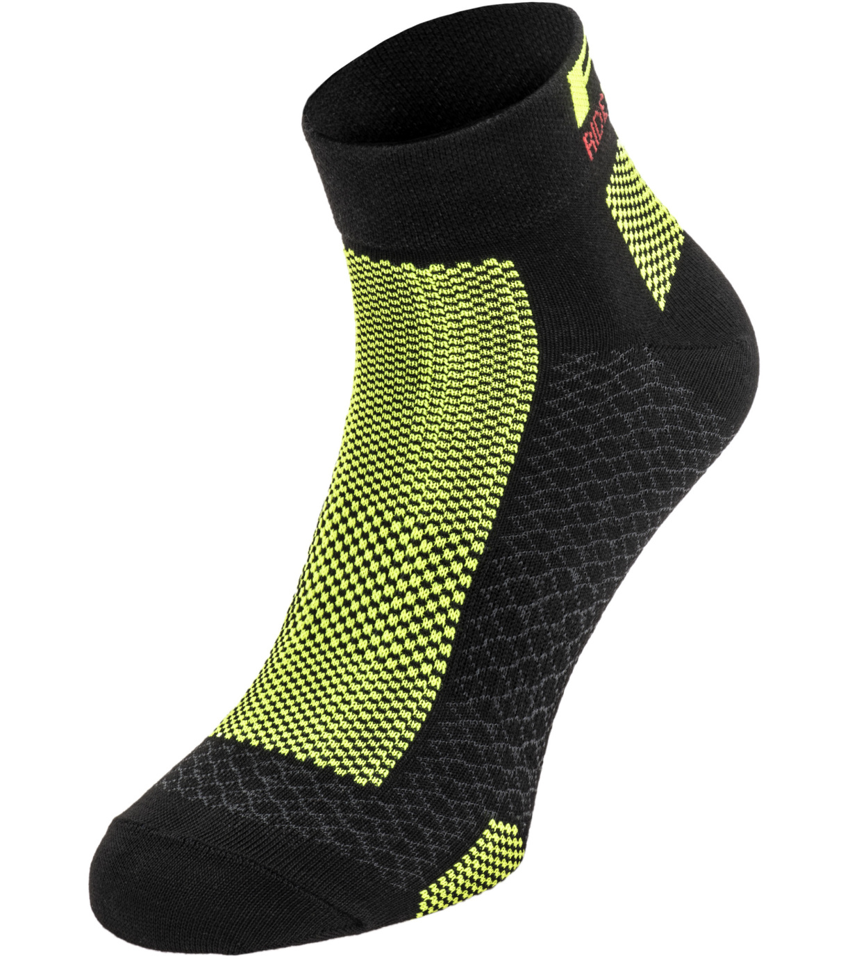 Základní cyklistická ponožka pro každodenní trénink Vyrobeno z polyamidu: lehké a odolné Odvětrávaná síťovina: cirkulace vzduchu Vysoce prodyšný materiál Chrání proti otlakům od obuvi (nárt) a od pedálů (chodidlo) Zesílení zátěžové partie kotníku a achilovky