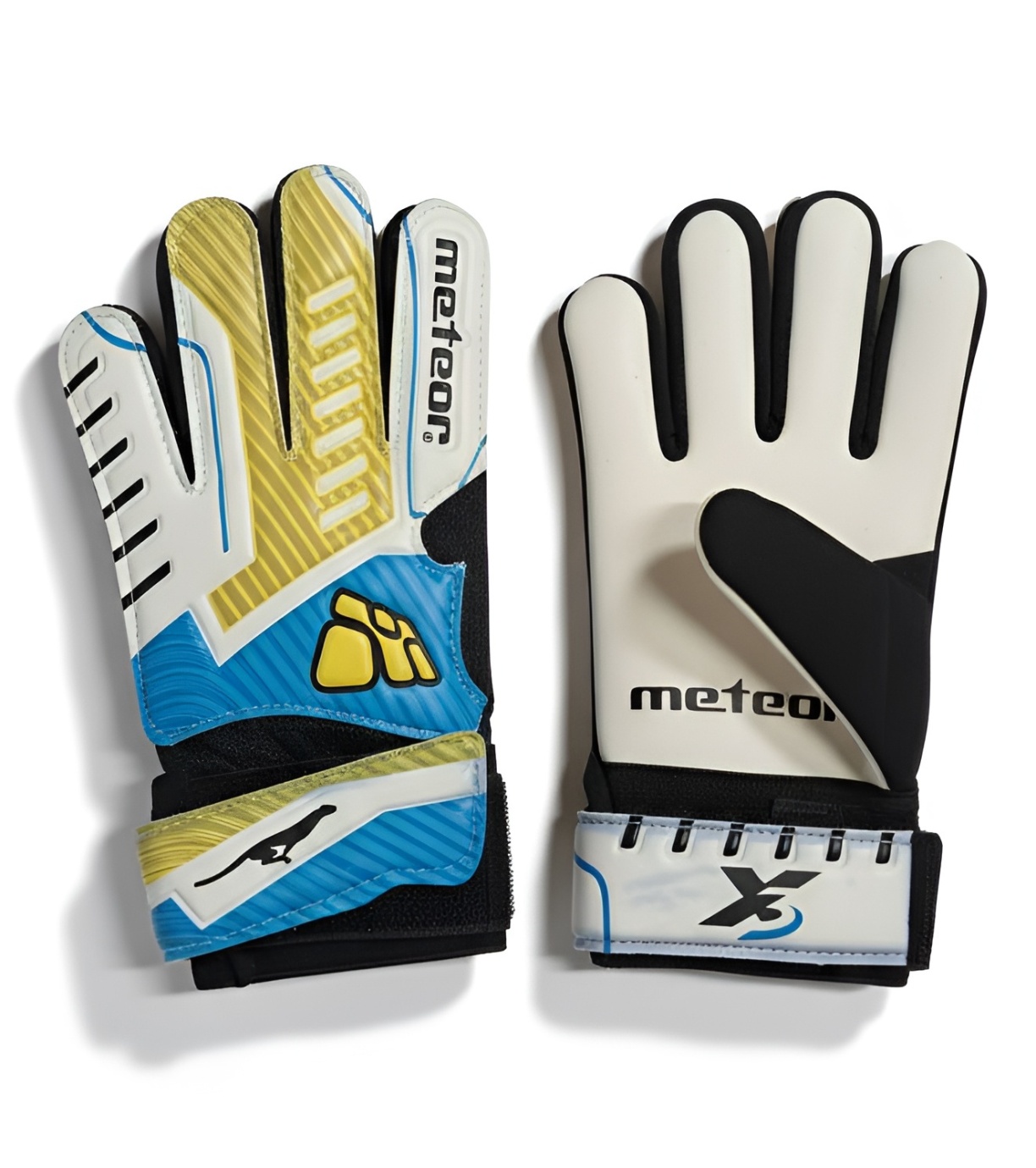 Kvalitní brankářské rukavice značky Meteor, vhodné pro trénink i rekreační zápasy. Dlaň je vyrobena z přilnavého latexového materiálu, který zajišťuje dobrý grip míče a jistotu při chytání i za horších podmínek. Ergonomický tvar rukavic podporuje přirozený pohyb prstů a pohodlí při nošení.