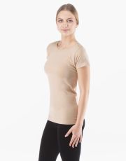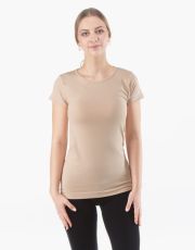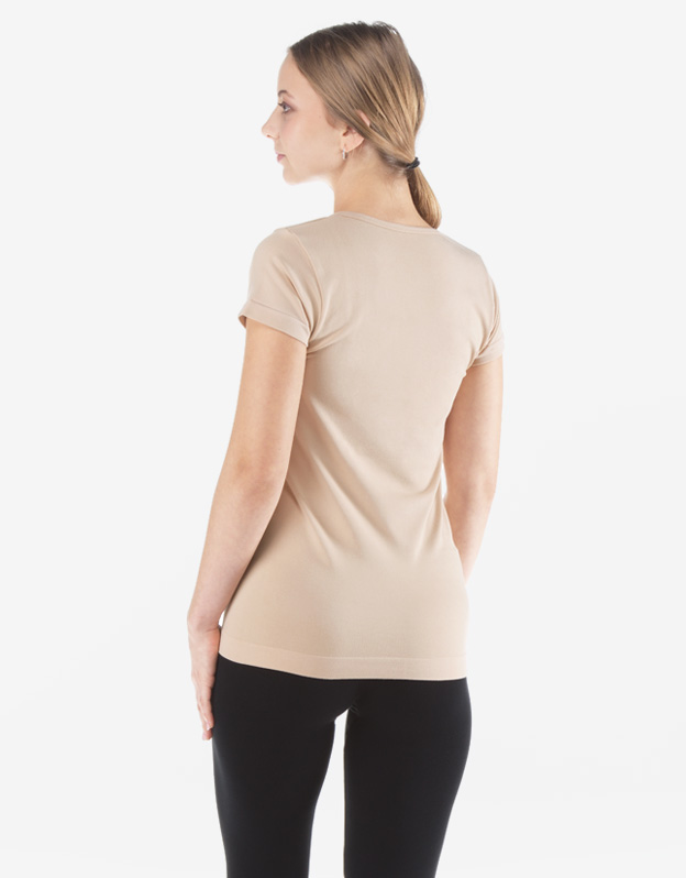Tričko s krátkým rukávem, dámské bezešvé prádlo. Dolní kraj je zapravený bezešvým způsobem. Průkrčník je začištěný lemovacím proužkem. Tričko je vhodné pro každodenní nošení i sport díky klasicky střiženému kulatému průkrčníku. Tričko je jednobarevné. Je bez loga.