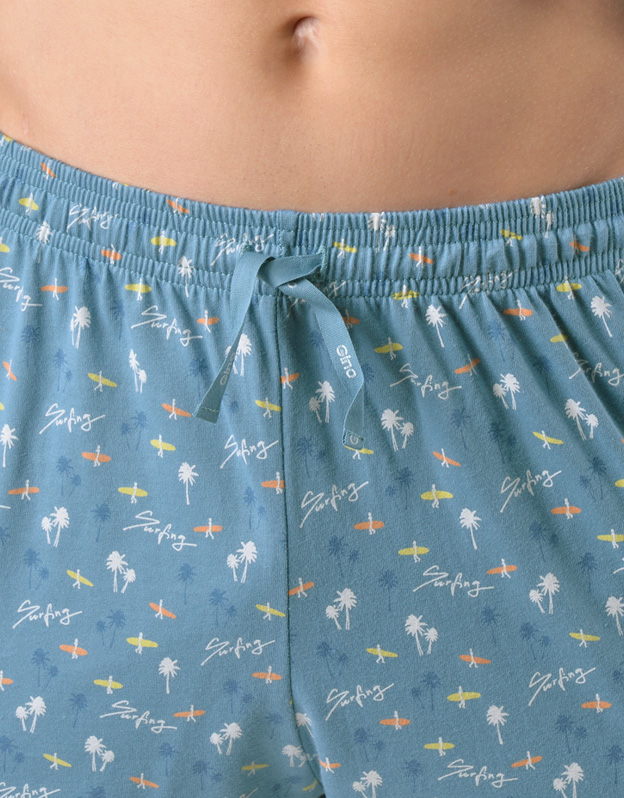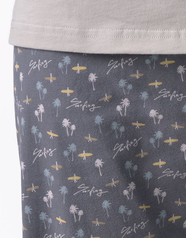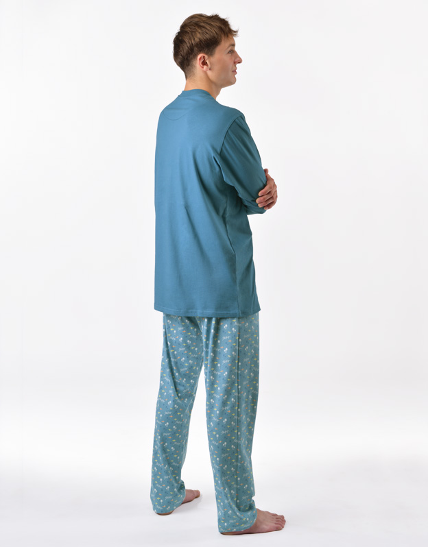 Pánské klasické pyžamo volného střihu z jemného úpletu Vám poskytne pohodlí během spánku. Kalhoty s menším vzorem doplňuje triko s dlouhými rukávy a větším potiskem na hrudi.