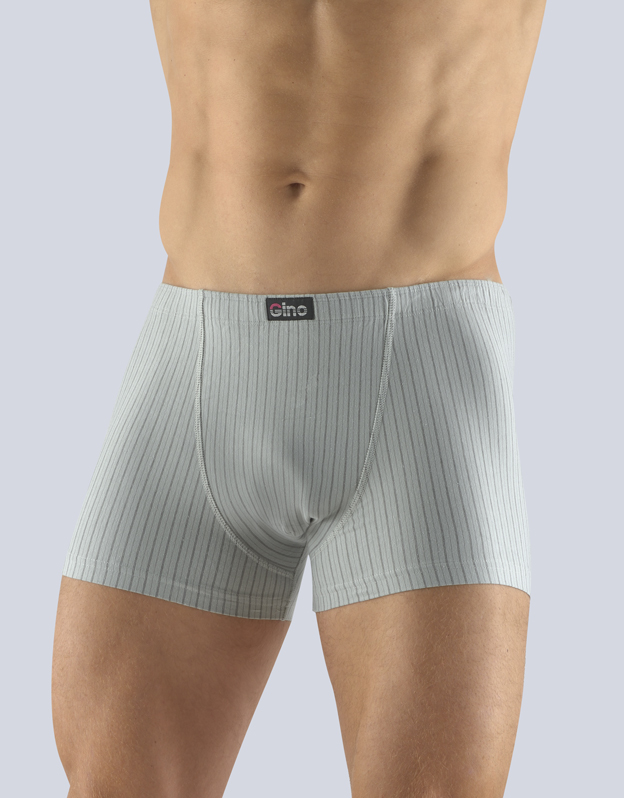Boxerky s kratší nohavičkou, pánské šité prádlo. V pasovém kraji je zašitá širší pruženka. Nohavičky jsou začištěné podehnutím. Zadní díl je hladký. Boxerky jsou vyrobené z materiálu s vypletenými proužky.