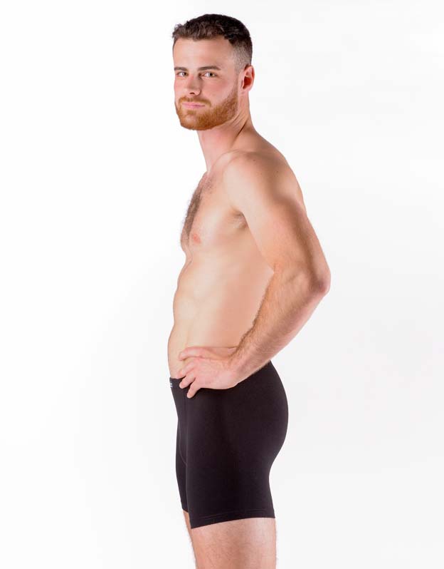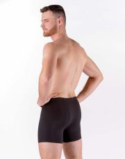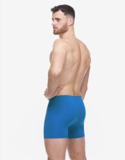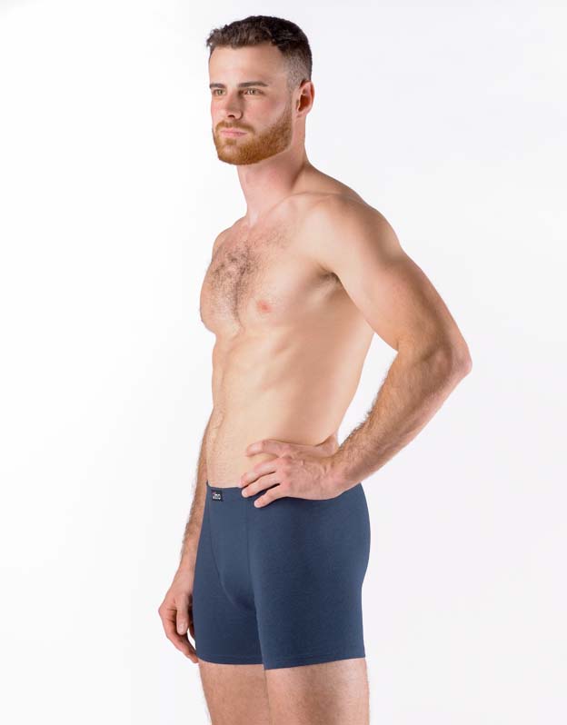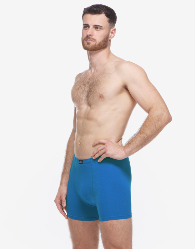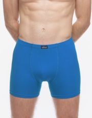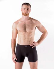 Boxerky s delší nohavičkou, pánské šité prádlo. V pasovém kraji je zašitá širší pruženka. Nohavičky jsou začištěné podehnutím. Zadní díl je členěný sedlem se dvěma švy. Boxerky jsou jednobarevné.