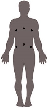 | A | Obvod hrudníku | 82 - 90 | 90 - 98 | 98 - 106 | 106 - 114 | 114 - 123 | 123 - 135 | 135 - 147 | 147 - 159 |