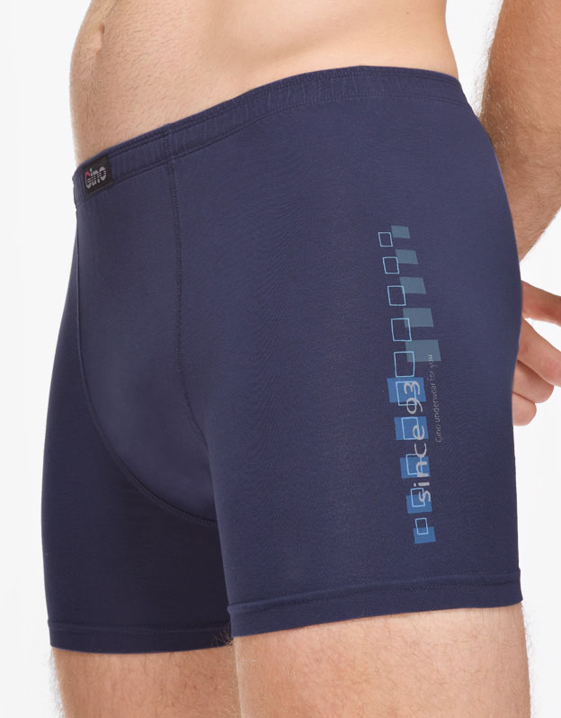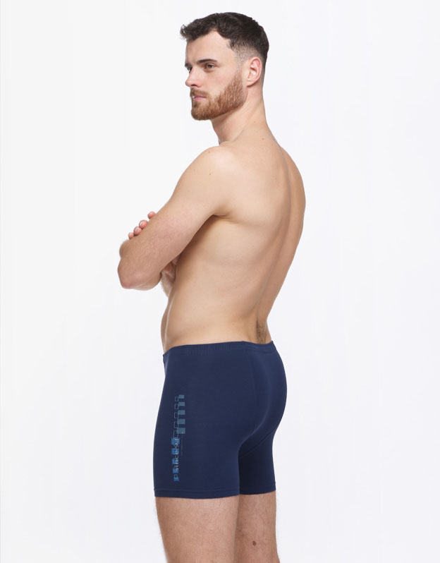 Pánské boxerky s delší nohavičkou, jejich zadní díl je členěný sedlem se dvěma švy. Na boku je solitérním tisk. Jsou kouskem prádla, který se stane favoritem každého milovníka pohodlí a přírodních materiálů. Bavlněný úplet je doplněn o pružná elastanová vlákna, díky kterým je materiál velmi přizpůsobivý a pohodlný.