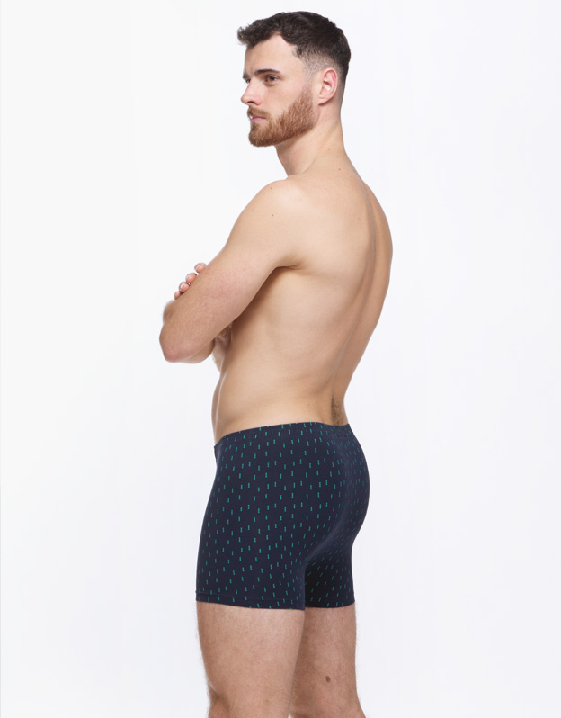Pánské boxerky s kratší nohavičkou jsou kouskem prádla, který nesmí chybět žádnému milovníkovi pohodlí a přírodních materiálů. Boxerky jsou potištěny drobným motivem. Bavlněný úplet je doplněn o pružná elastanová vlákna, díky kterým je materiál velmi přizpůsobivý a pohodlný.