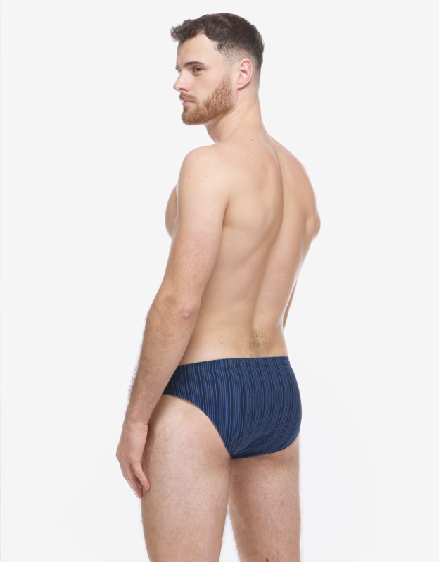 Slipy s úzkým bokem v moderním střihu s vyplétaným vzorem decentního proužku budou ideální volbou pro každého, kdo má rád přírodní materiály. Úplet je z modalového vlákna s bavlnou, doplněném o elastanová vlákna. Materiál je přizpůsobivý, pohodlný a ideální pro každodenní nošení.