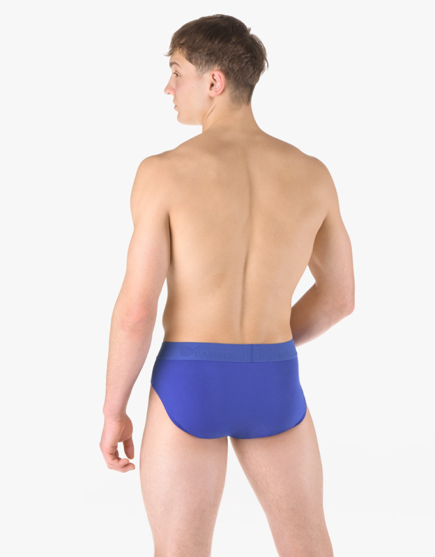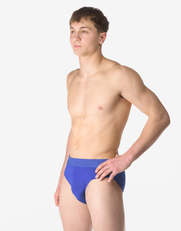 Slipy se širším bokem, pánské šité prádlo. V pasovém kraji je našitá širší pruženka. V nohavičkách je zašitá úzká pruženka. Slipy jsou jednobarevné.