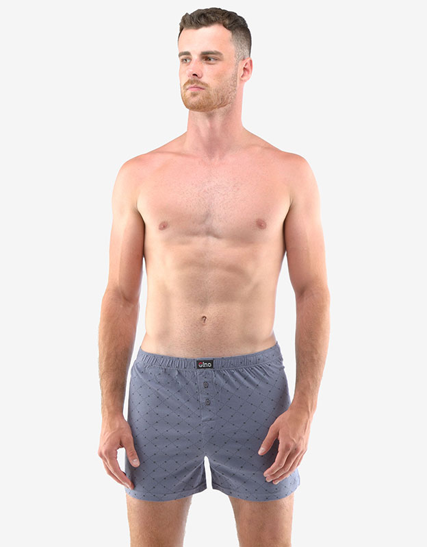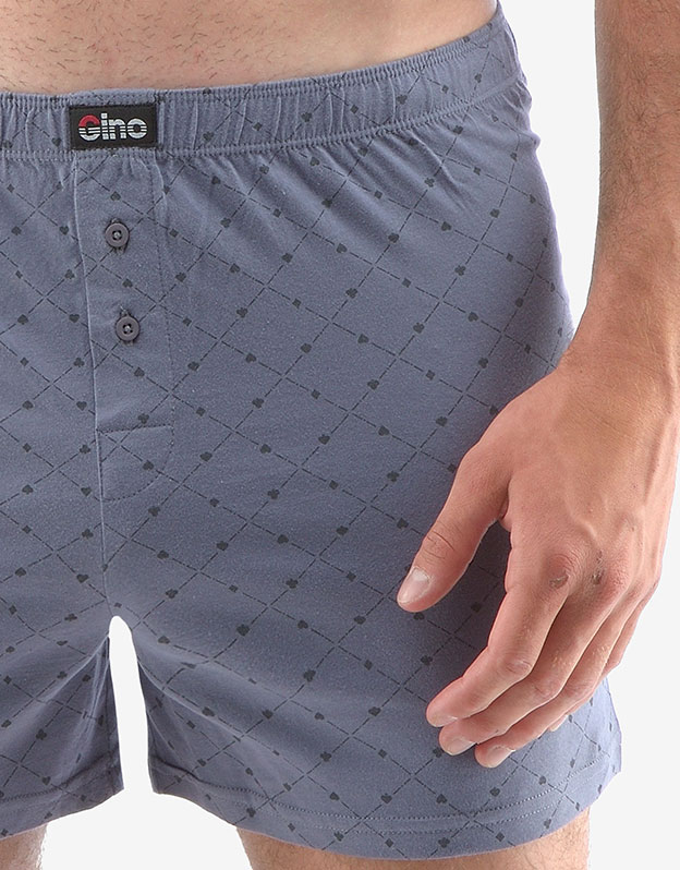 Volné trenky ze 100% potěší každého, kdo má rád klasický pohodlný střih volných trenek a přírodní materiály. Dobře padnoucí pasová guma a rozparek na dva knoflíky jsou samozřejmostí. Tento kousek má trendy celoplošný vzor a v pase nášivku s logem Gino a jsou vhodné pro každodenní nošení.